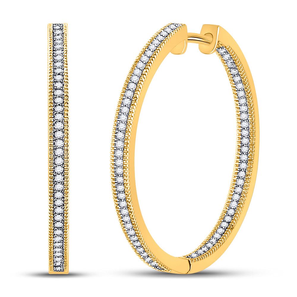 Round Diamond Inside Outside Hoop Earrings 1/2 Cttw 10KT Yellow Gold
