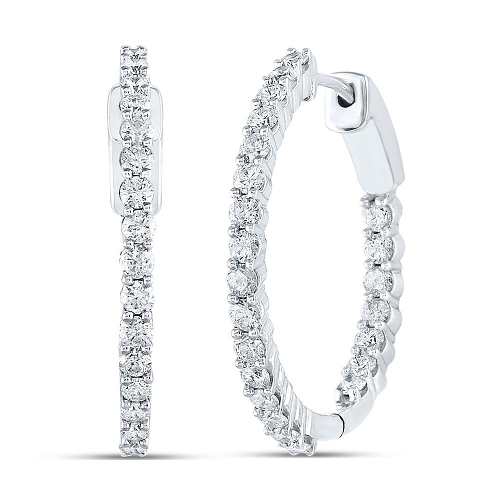 Round Diamond Inside Outside Hoop Earrings 2 Cttw 10KT White Gold