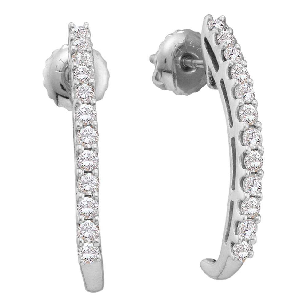Round Diamond J Half Hoop Earrings 1/2 Cttw 14KT White Gold