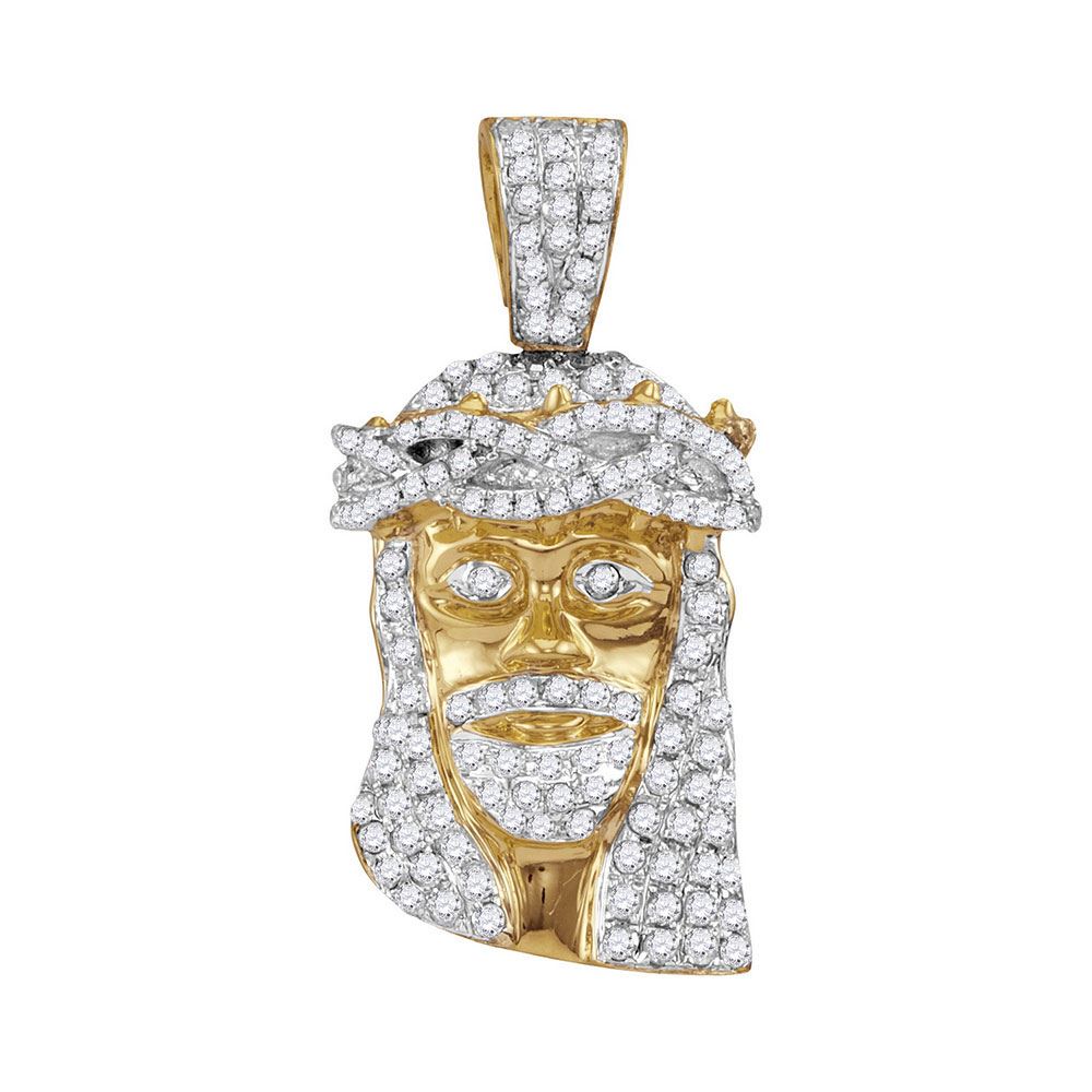 Round Diamond Jesus Face Charm Pendant 3/4 Cttw 10KT Yellow Gold