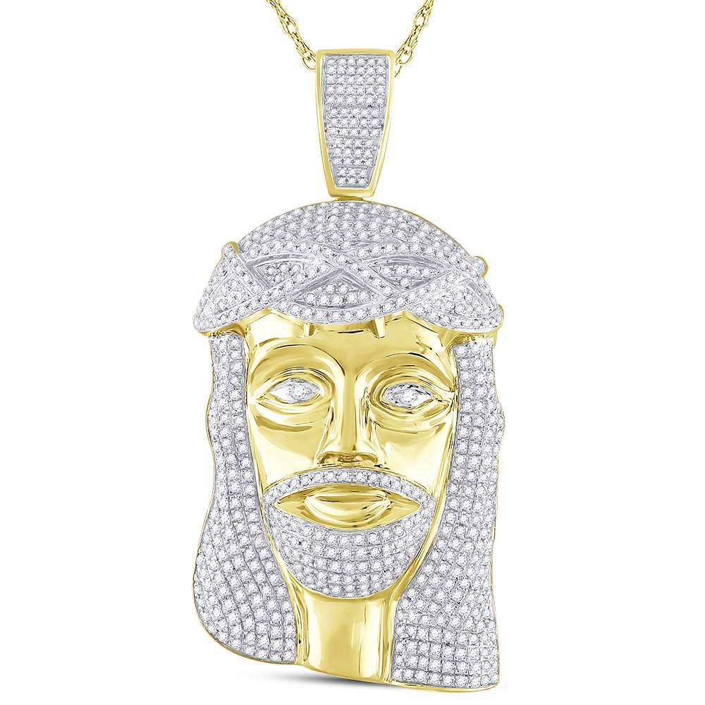 10kt Yellow Gold Mens Round Diamond Jesus Face Charm Pendant 3 Cttw.