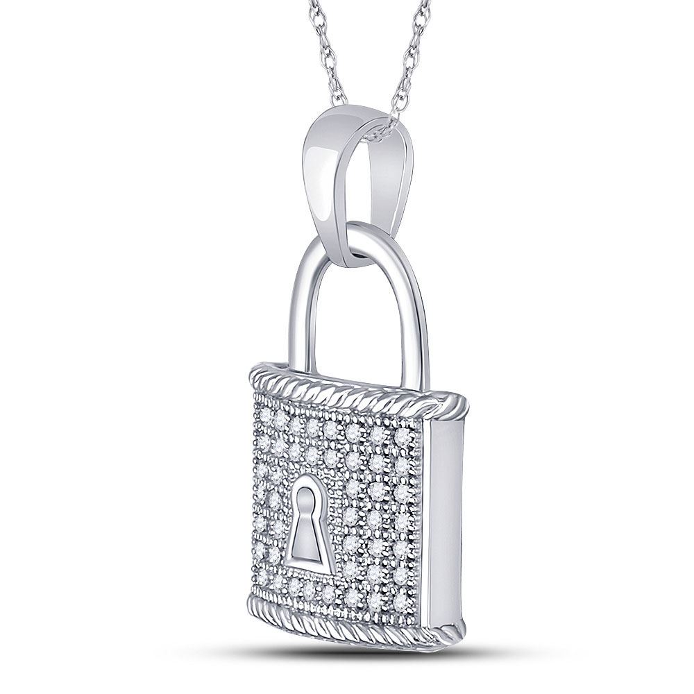 10kt White Gold Womens Round Diamond Key Lock Dangle Pendant 1/8 Cttw.