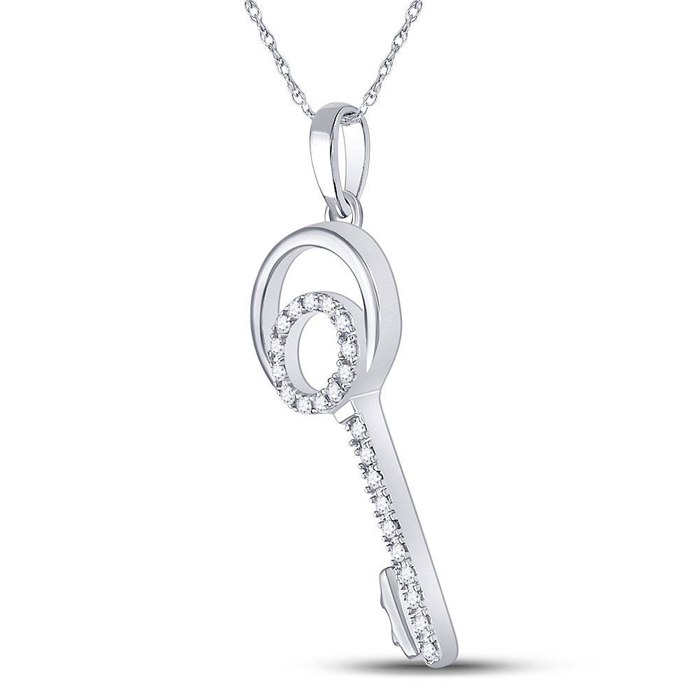 10kt White Gold Womens Round Diamond Key Pendant 1/12 Cttw.
