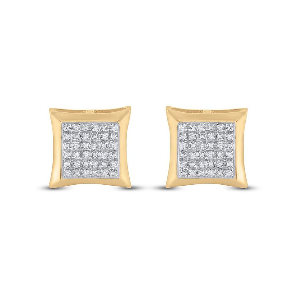 10kt Yellow Gold Mens Round Diamond Kite Square Earrings 1/12 Cttw.