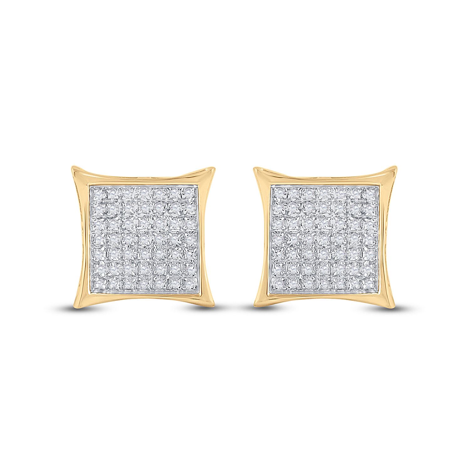 10kt Yellow Gold Womens Round Diamond Kite Square Earrings 1/3 Cttw.