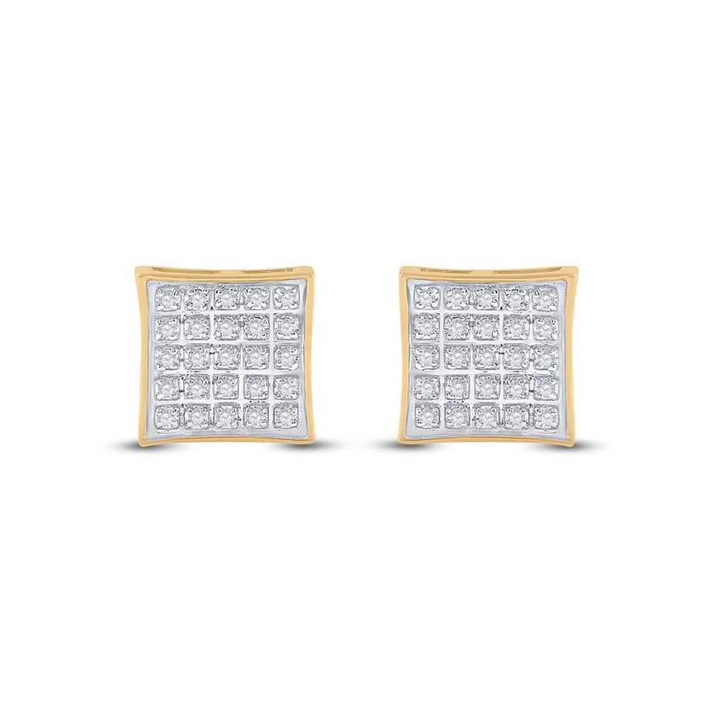 10kt Yellow Gold Mens Round Diamond Kite Square Earrings 1/6 Cttw.