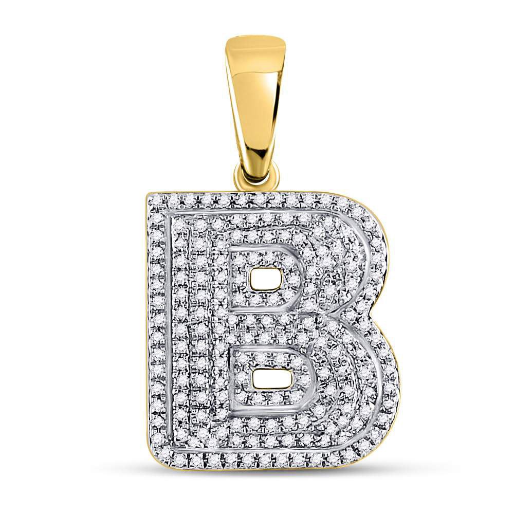 10kt Yellow Gold Mens Round Diamond Letter B Bubble Initial Charm Pendant 1/2 Cttw.