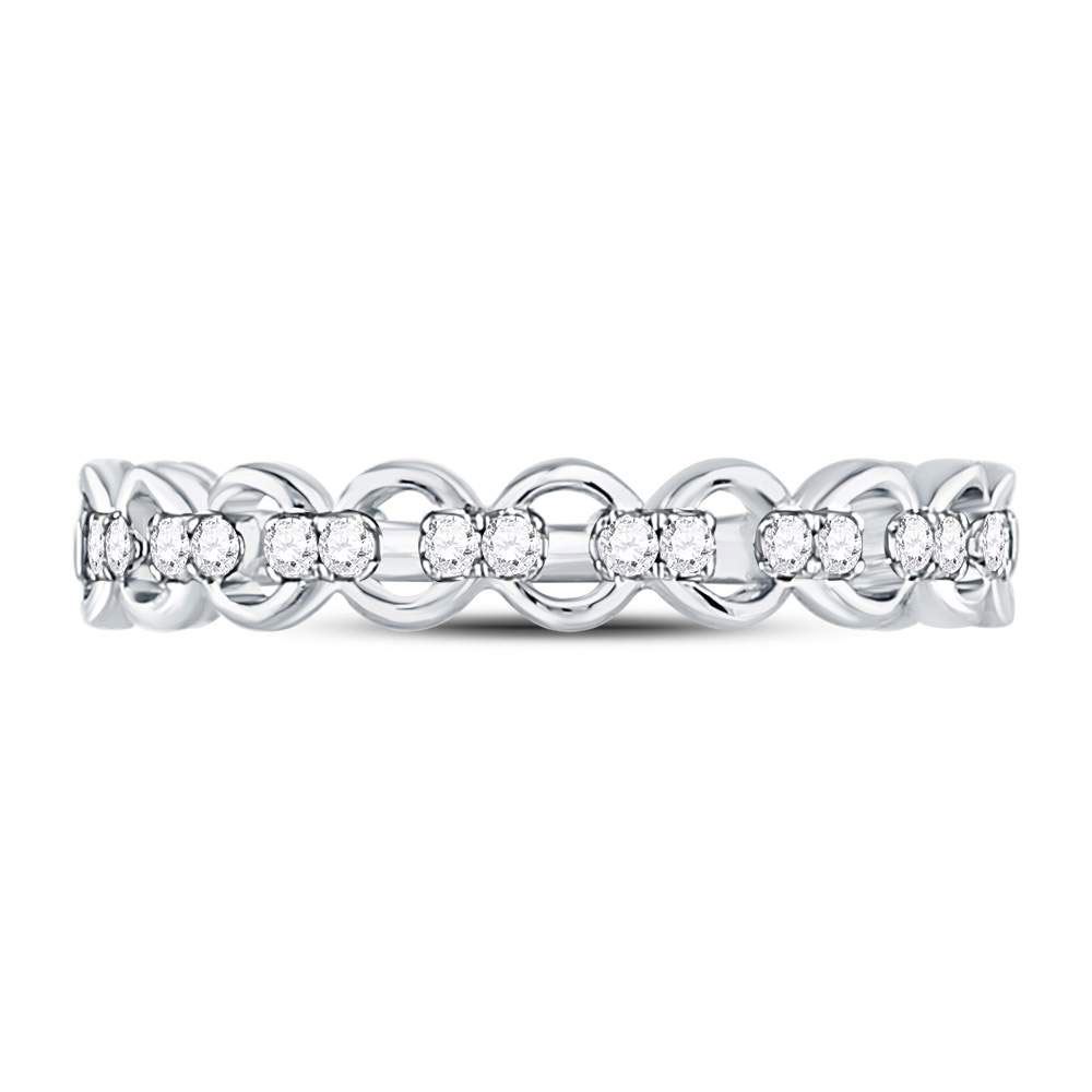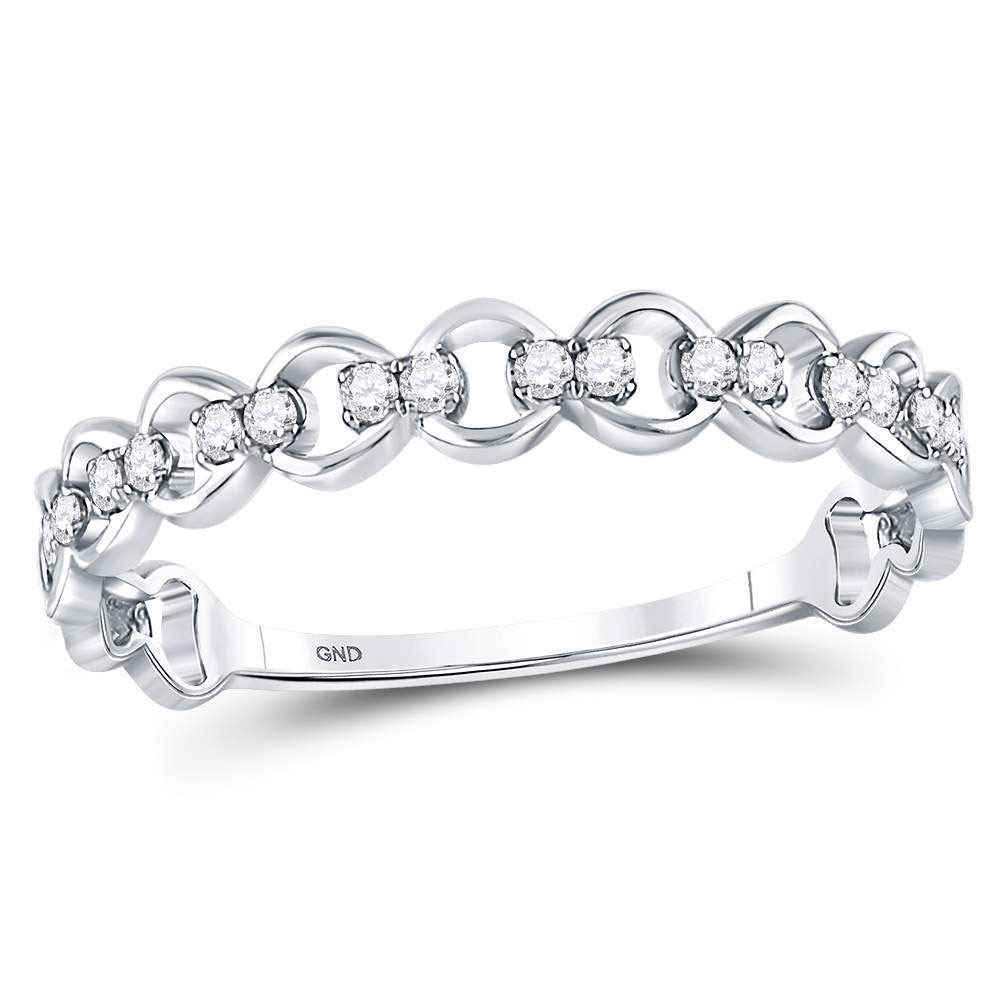 Round Diamond Link Stackable Band Ring 1/8 Cttw 10KT White Gold