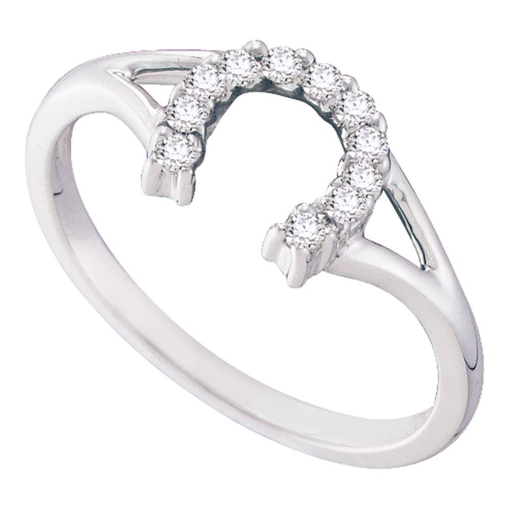 Round Diamond Lucky Horseshoe Split-shank Ring 1/10 Cttw 10KT White Gold