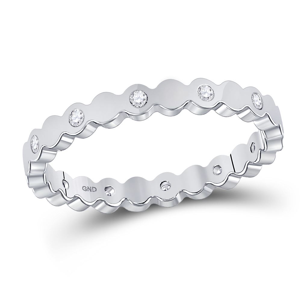 14kt White Gold Womens Round Diamond Machine-Set Band Ring 1/10 Cttw.
