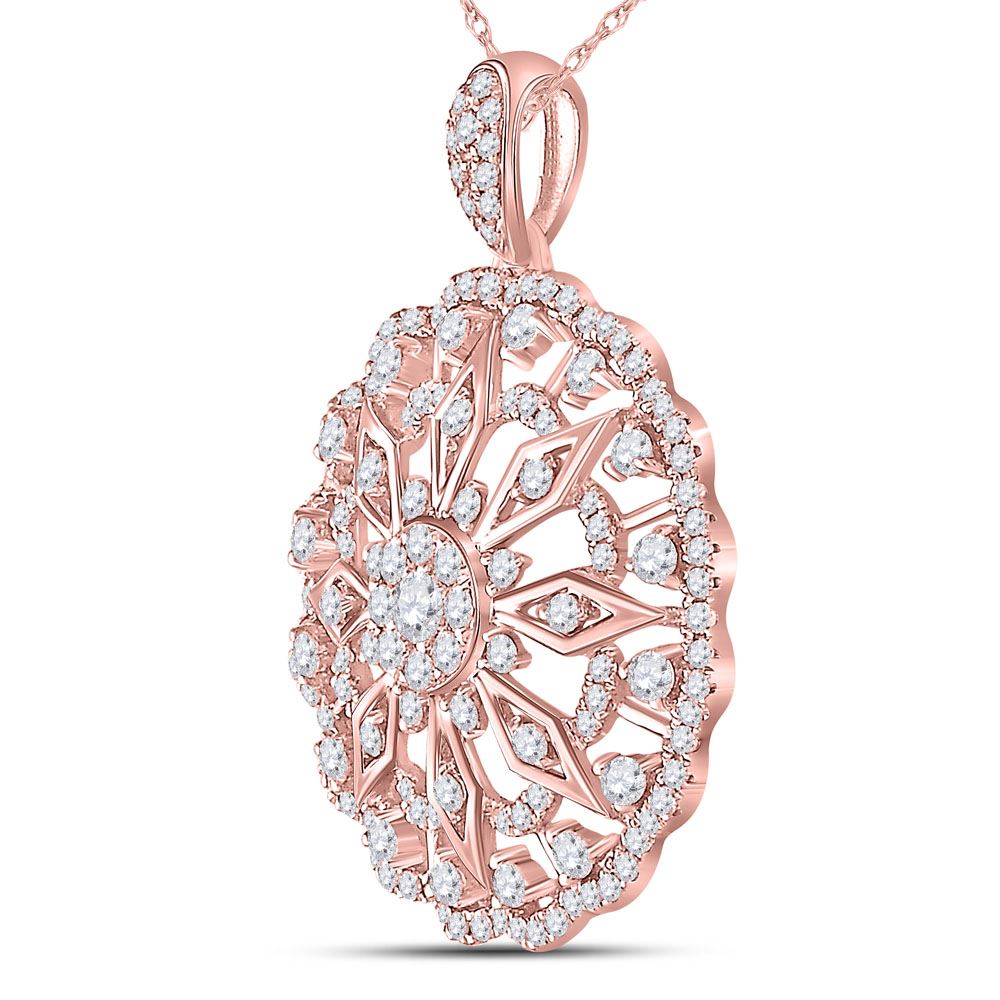 14kt Rose Gold Womens Round Diamond Mandala Circle Pendant 7/8 Cttw.