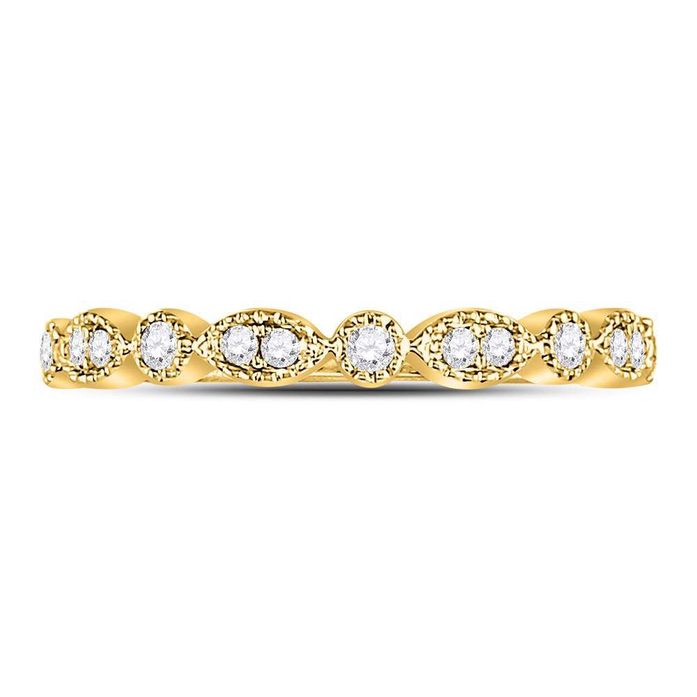 10kt Yellow Gold Womens Round Diamond Marquise Dot Stackable Band Ring 1/6 Cttw.