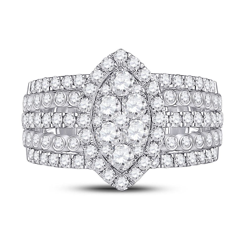 14kt White Gold Womens Round Diamond Marquise-shape Cluster Ring 1-3/4 Cttw.