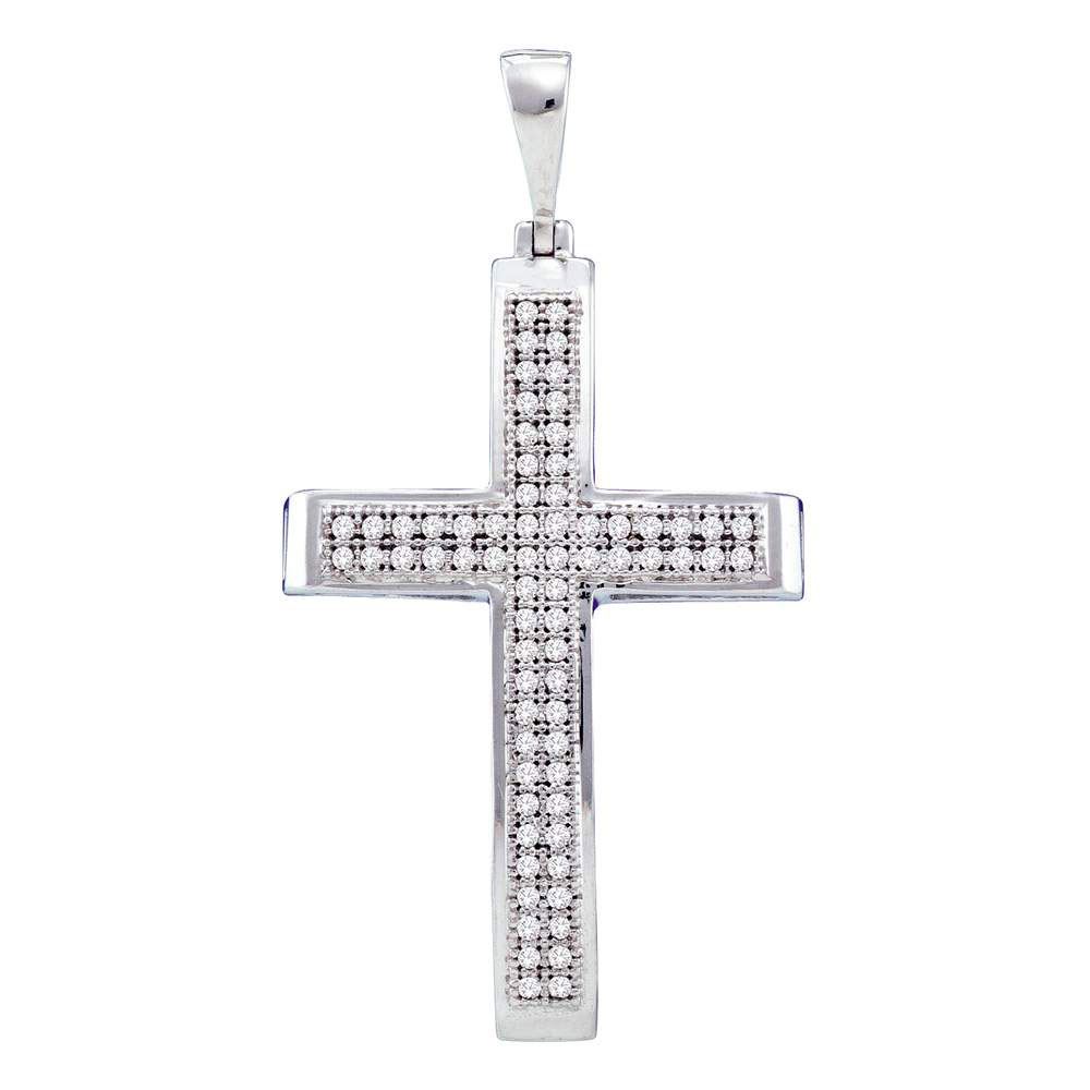 10kt White Gold Womens Round Diamond Medium Cross Pendant 1/5 Cttw.