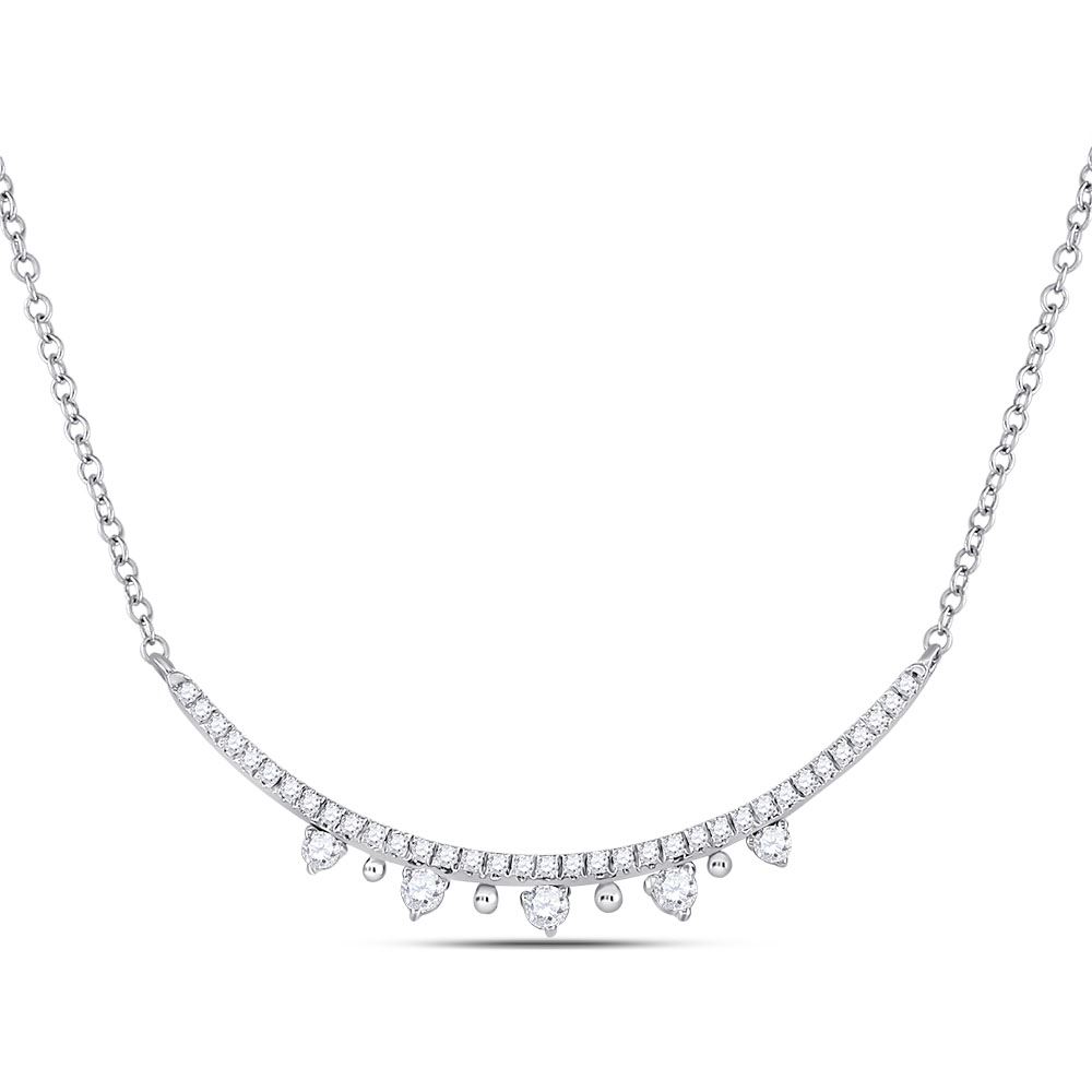 Round Diamond Modern Curved Bar Necklace 1/4 Cttw 14KT White Gold