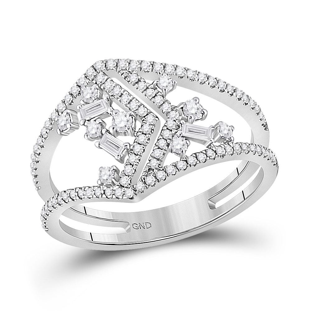 Round Diamond Modern Geometric Band Ring 3/8 Cttw 14KT White Gold