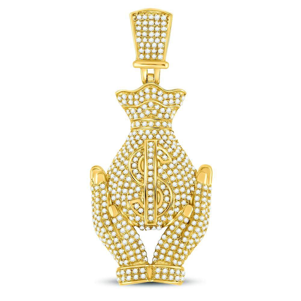10kt Yellow Gold Mens Round Diamond Money Bag Hands Charm Pendant 2 Cttw.
