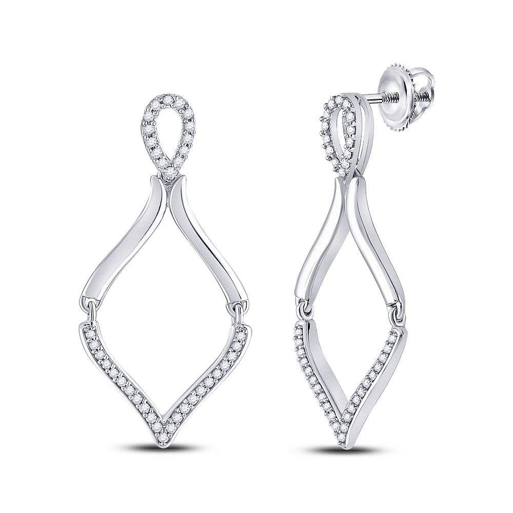 10kt White Gold Womens Round Diamond Moving Dangle Earrings 1/5 Cttw.
