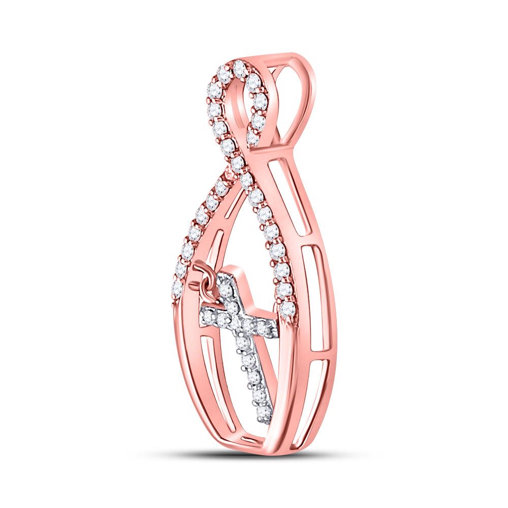 Round Diamond Moving Twinkle Cross Pendant 1/6 Cttw 10KT Two-tone Gold