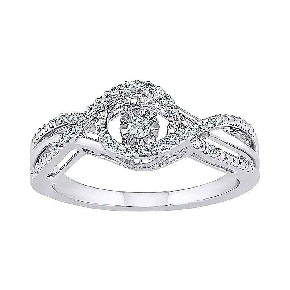 10kt White Gold Womens Round Diamond Moving Twinkle Solitaire Ring 1/6 Cttw.