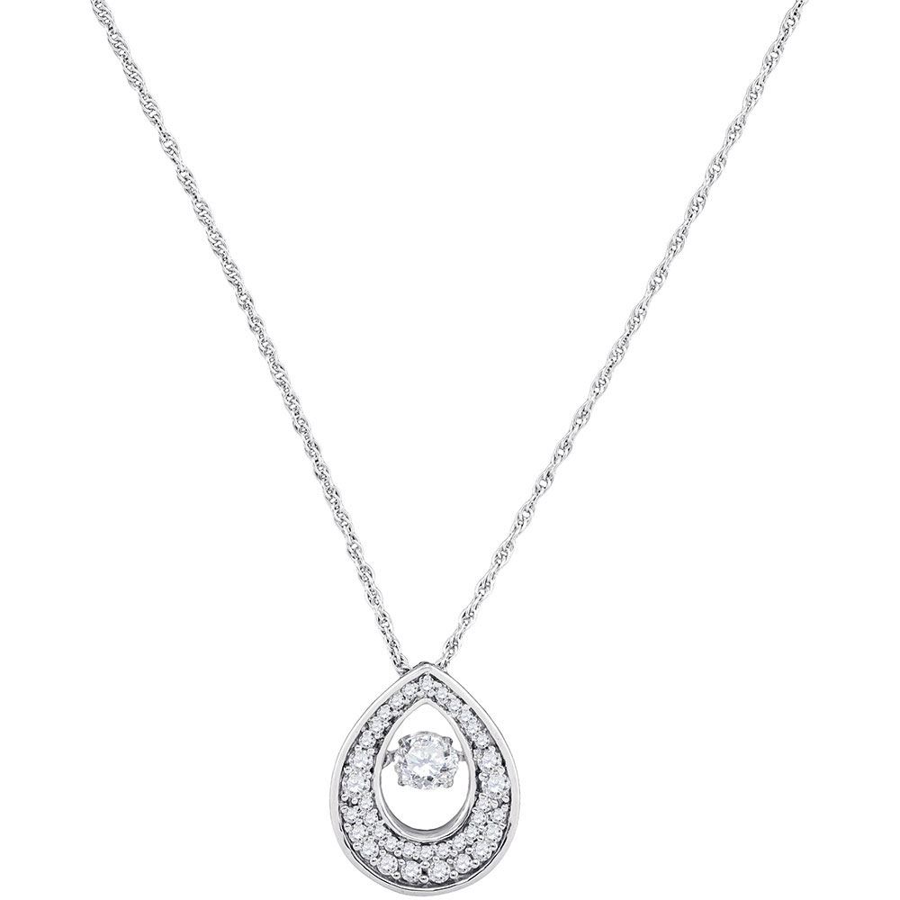 10kt White Gold Womens Round Diamond Moving Twinkle Solitaire Teardrop Pendant 1/2 Cttw.