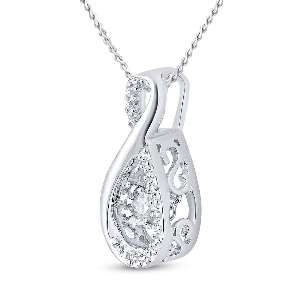 10kt White Gold Womens Round Diamond Moving Twinkle Teardrop Pendant 1/20 Cttw.