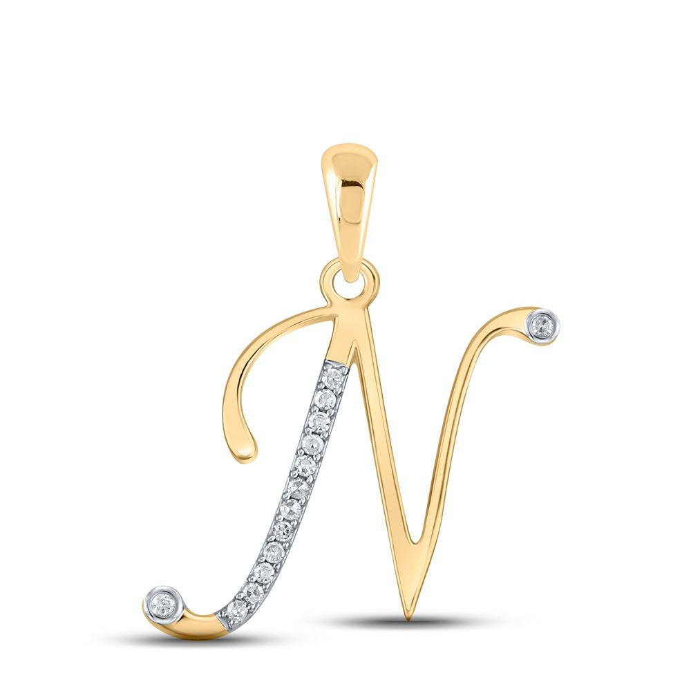 10kt Yellow Gold Womens Round Diamond N Initial Letter Pendant 1/20 Cttw.