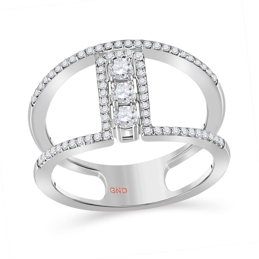 10kt White Gold Womens Round Diamond Negative Space 3-stone Ring 3/8 Cttw.