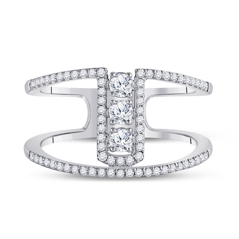 10kt White Gold Womens Round Diamond Negative Space 3-stone Ring 3/8 Cttw.