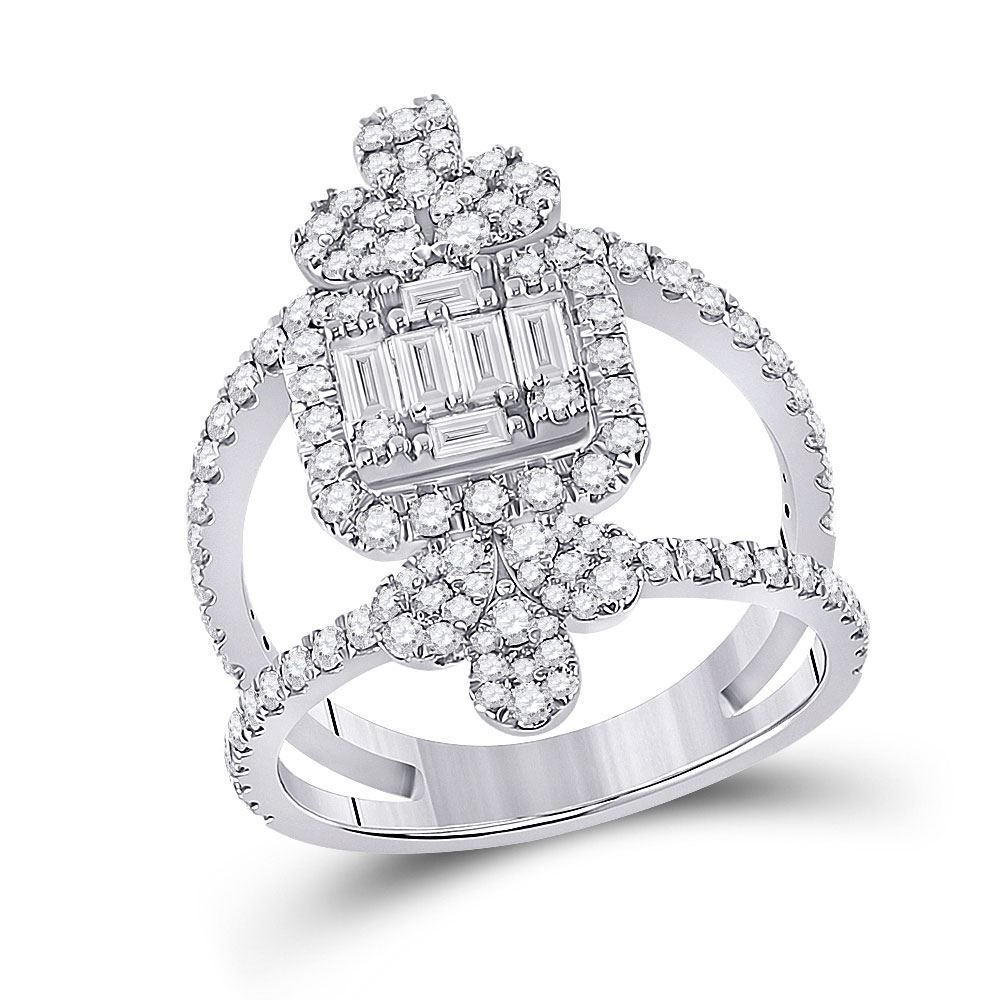 14kt White Gold Womens Round Diamond Negative Space Cluster Fashion Ring 1-1/2 Cttw.