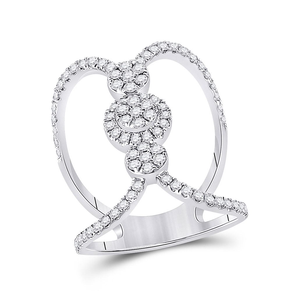 14kt White Gold Womens Round Diamond Negative Space Cluster Ring 7/8 Cttw.