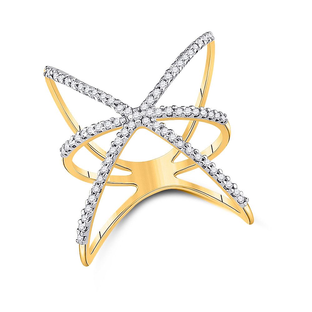 10kt Yellow Gold Womens Round Diamond Negative Space Fashion Ring 1/3 Cttw.