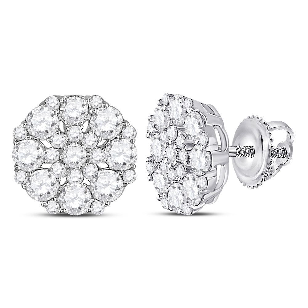 Round Diamond Octagon Cluster Earrings 1-1/2 Cttw 14KT White Gold