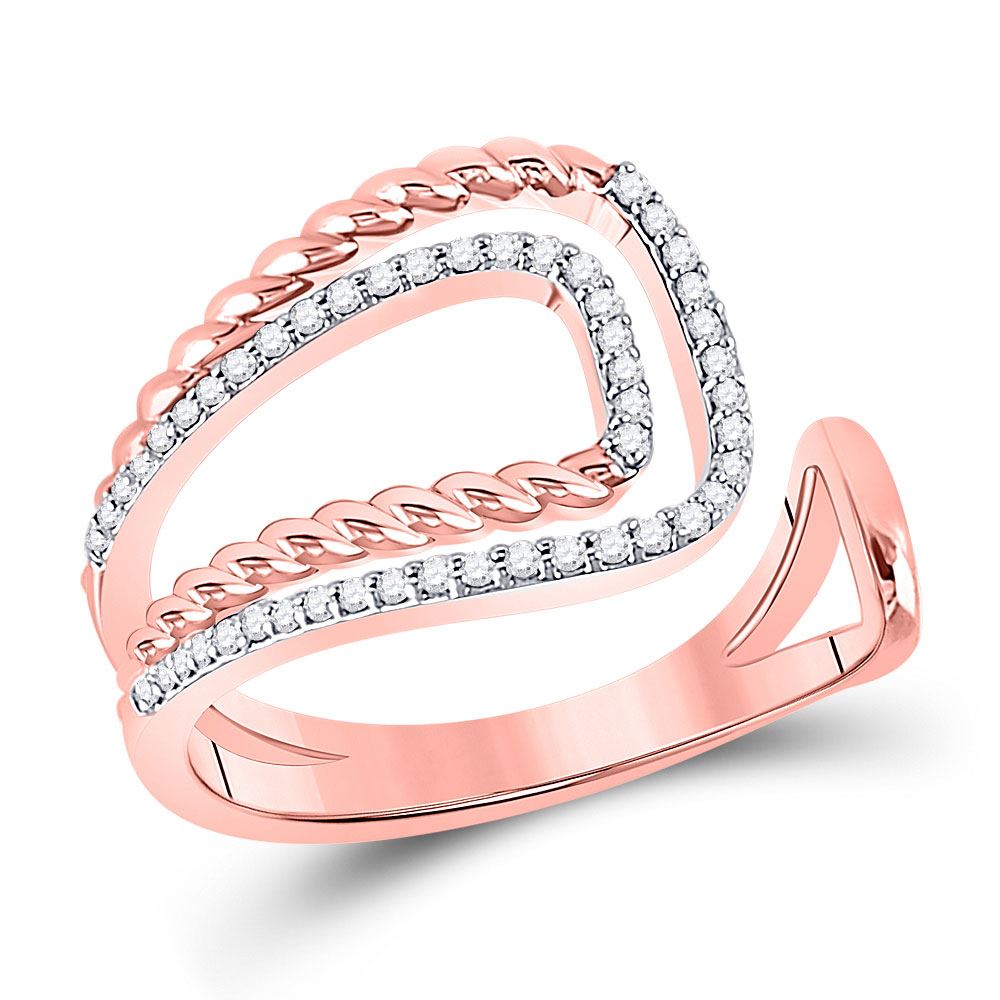 14kt Two-tone Gold Womens Round Diamond Open Rope Fashion Ring 1/5 Cttw.