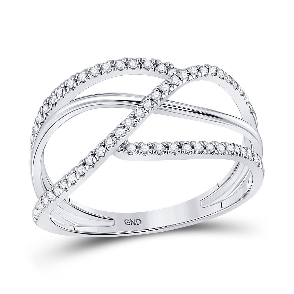 10kt White Gold Womens Round Diamond Open Strand Band Ring 1/5 Cttw.
