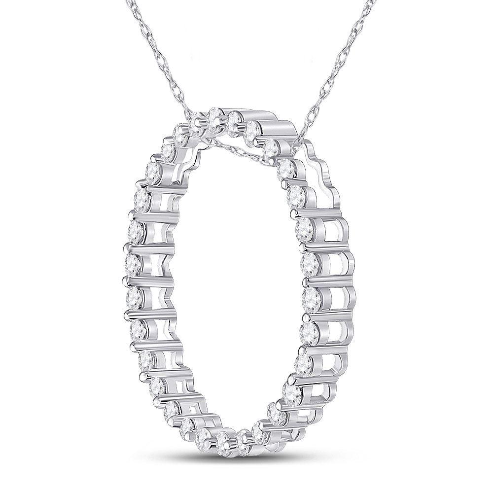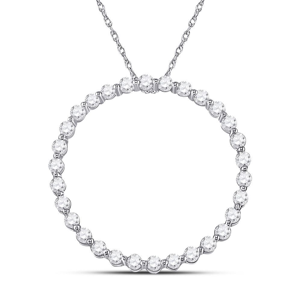 Round Diamond Outline Circle Pendant 1/2 Cttw 14KT White Gold