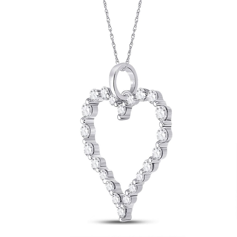 14kt White Gold Womens Round Diamond Outline Heart Pendant 1 Cttw.