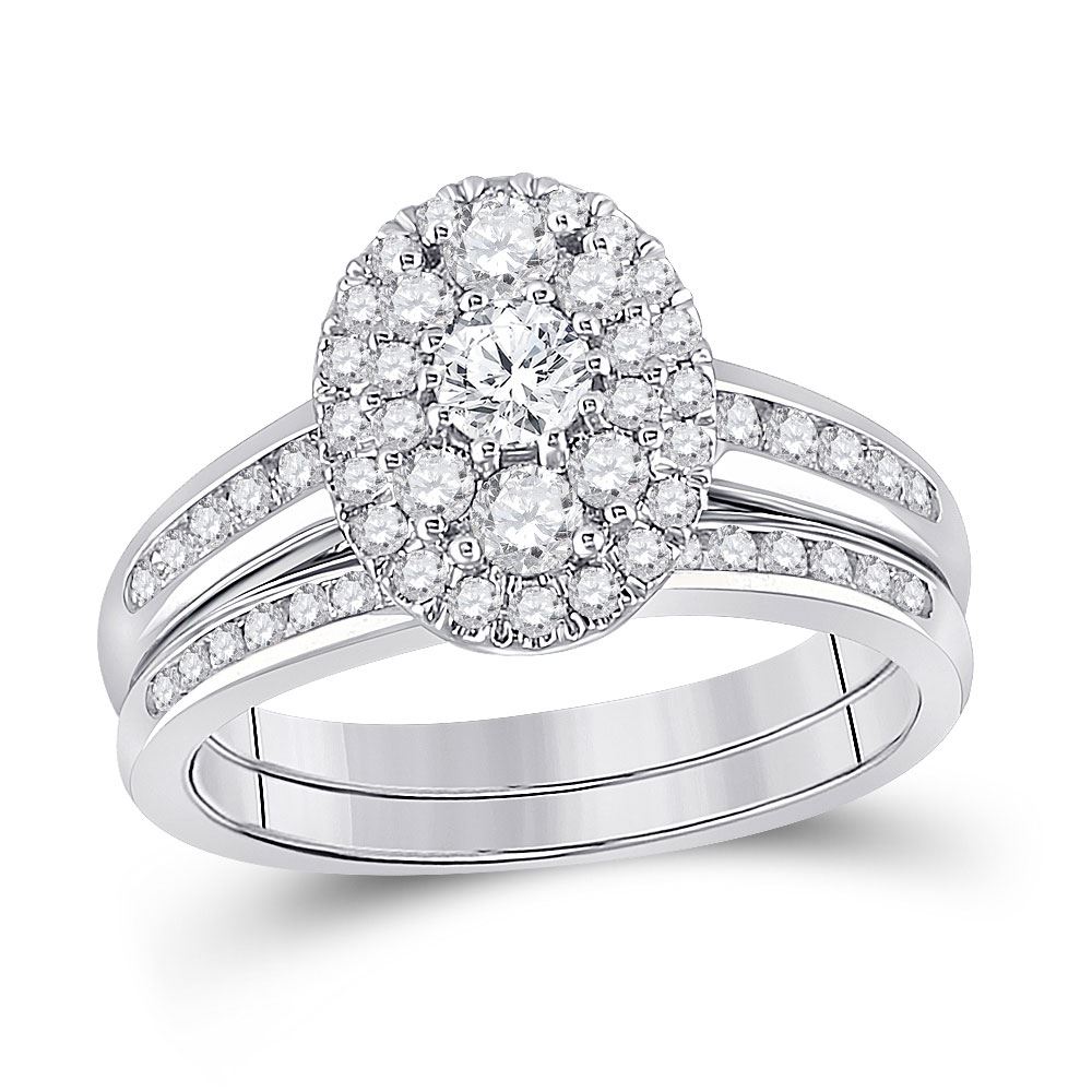 REF-74A9M ---- Round Diamond Oval Bridal Wedding Ring Band Set 1 Cttw 10kt White Gold
