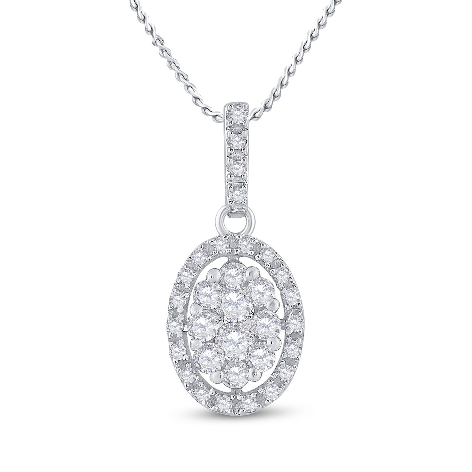 Round Diamond Oval Cluster Pendant 1/2 Cttw 14KT White Gold