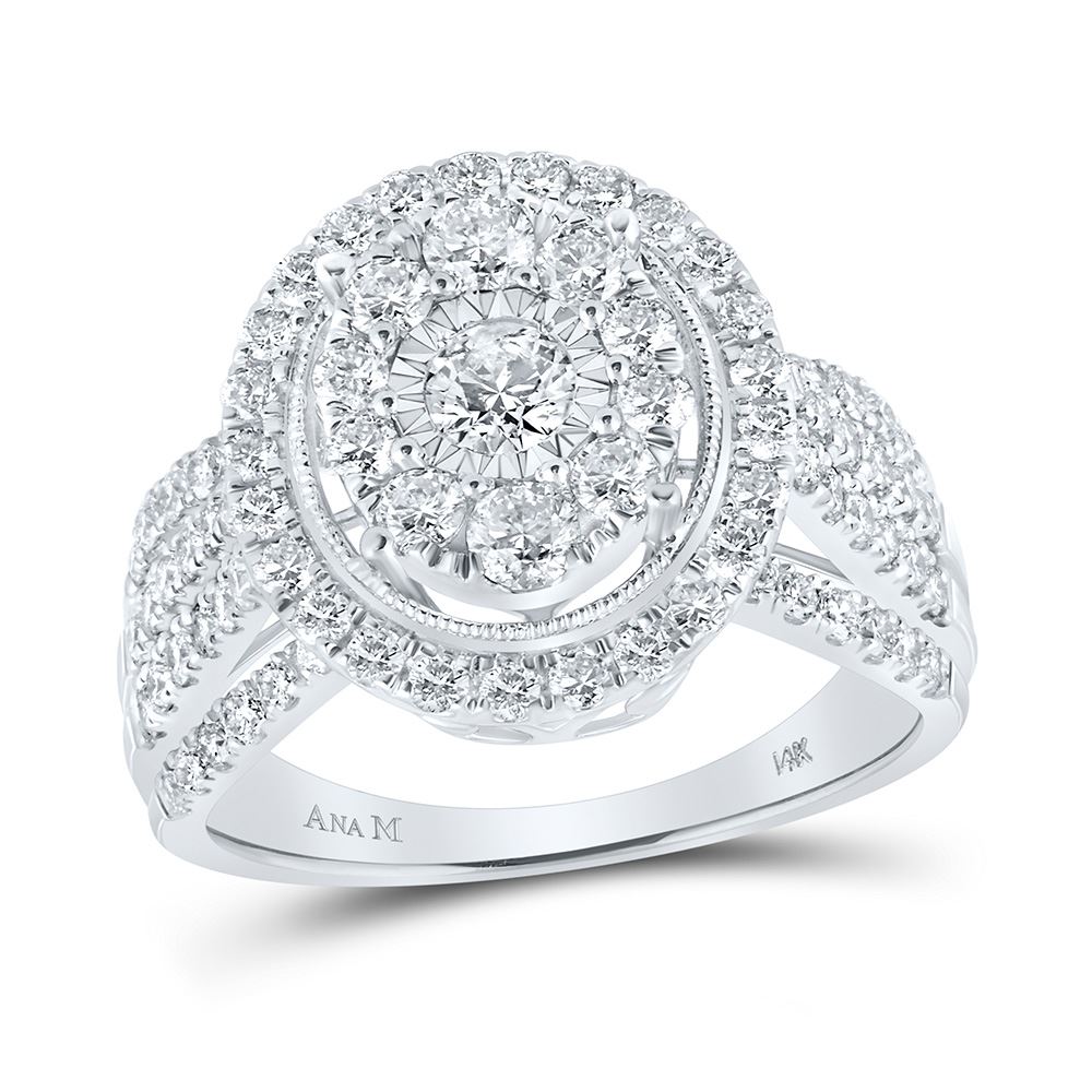 Round Diamond Oval Cluster Ring 1-1/2 Cttw 14KT White Gold