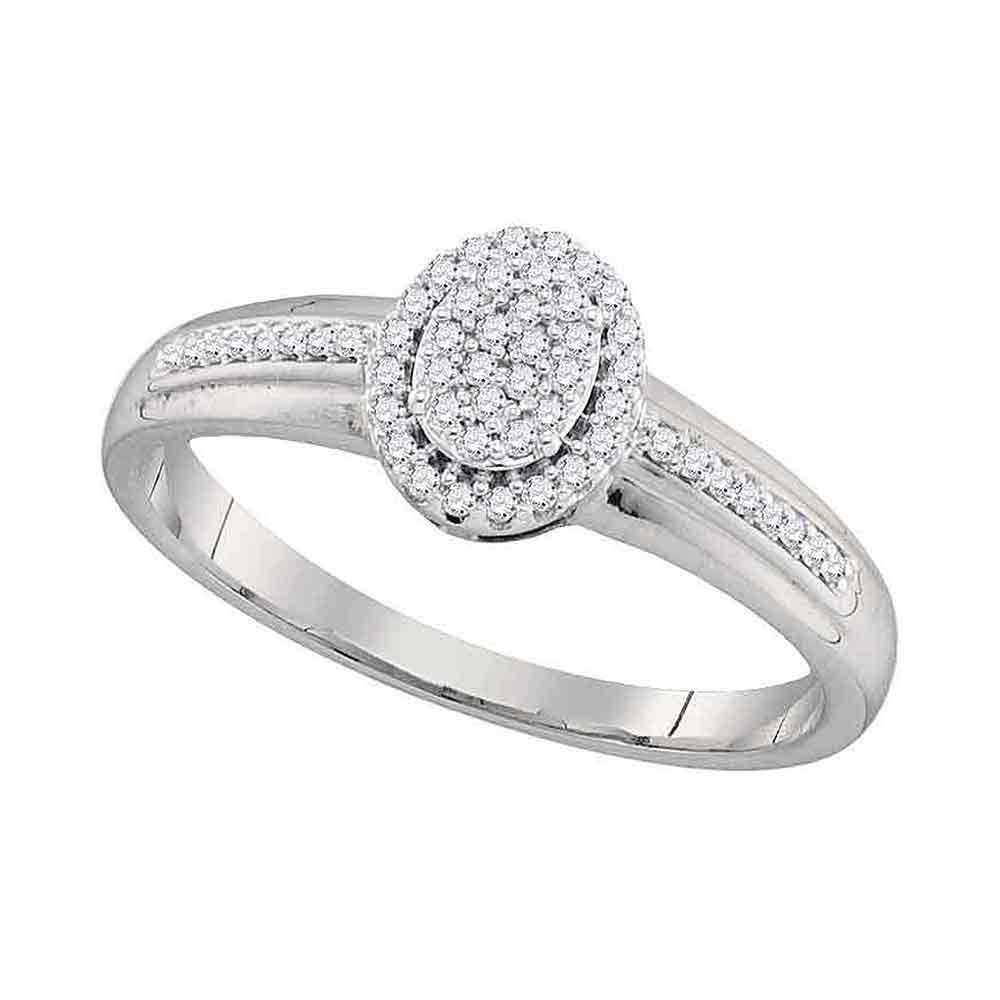 10kt White Gold Womens Round Diamond Oval Cluster Ring 1/6 Cttw.