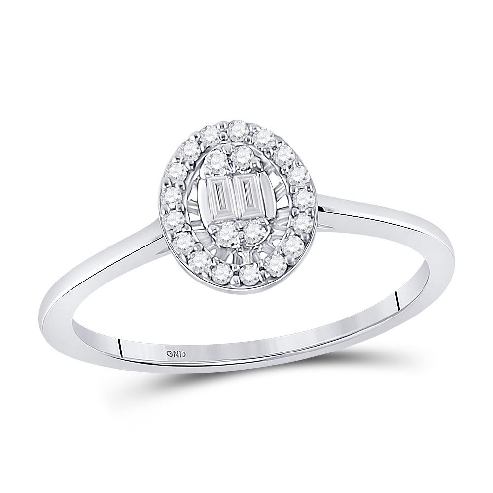 14kt White Gold Womens Round Diamond Oval Cluster Ring 1/6 Cttw.
