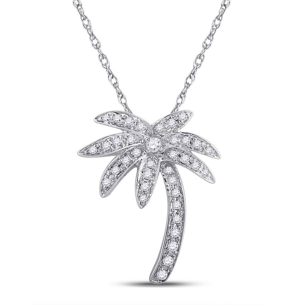 Round Diamond Palm Tree Nautical Beach Pendant 1/4 Cttw 14KT White Gold