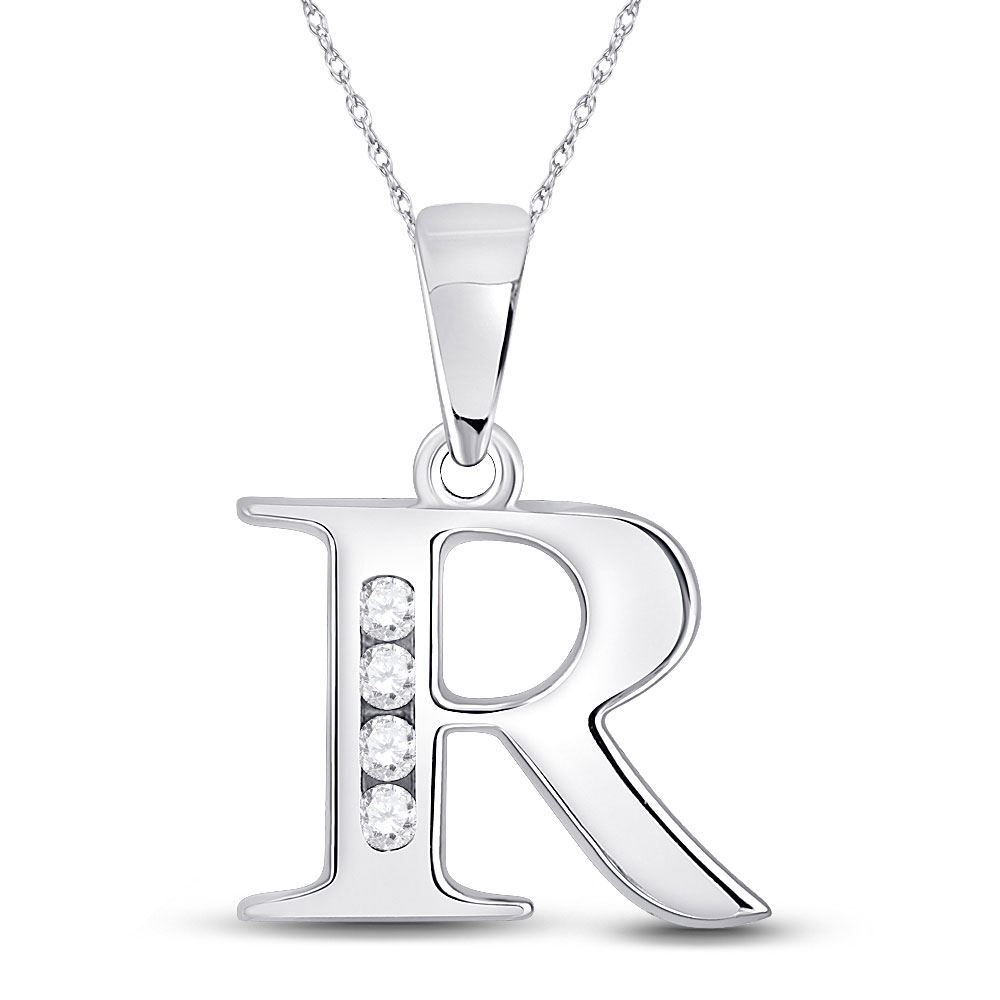 10kt White Gold Womens Round Diamond R Initial Letter Pendant 1/20 Cttw.