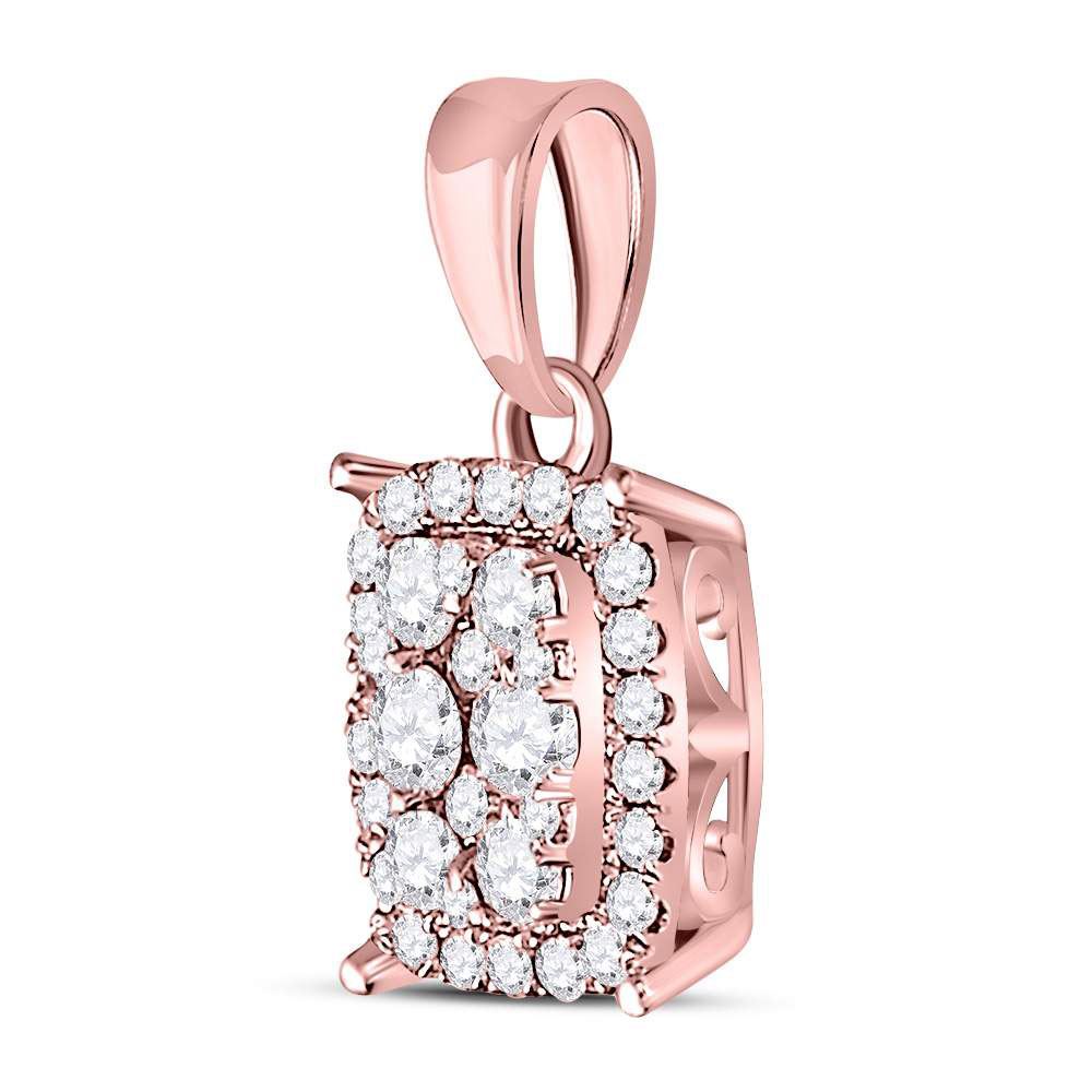 Round Diamond Rectangle Cluster Pendant 1/4 Cttw 14KT Rose Gold