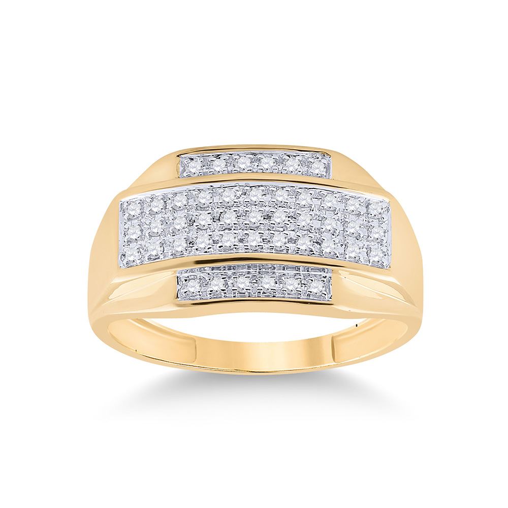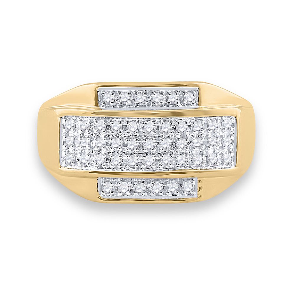 10kt Yellow Gold Mens Round Diamond Rectangle Cluster Ring 1/3 Cttw.