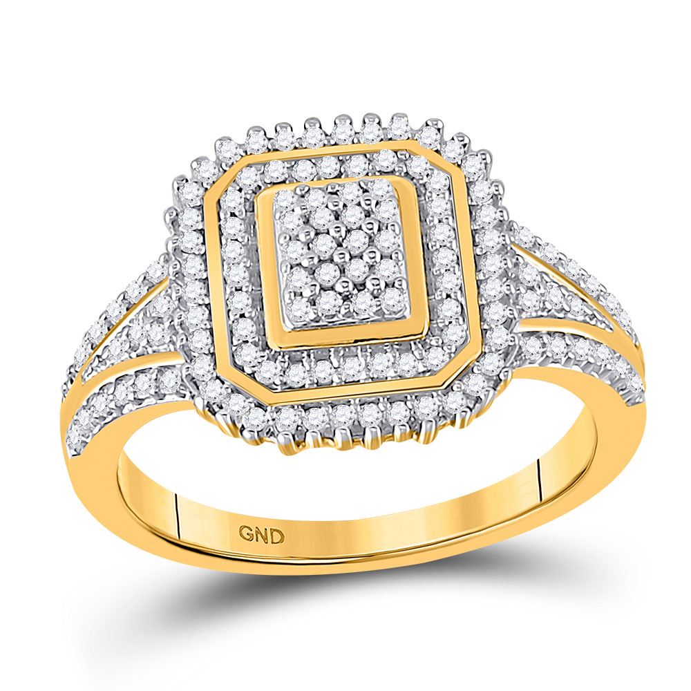10kt Yellow Gold Womens Round Diamond Rectangle Frame Cluster Ring 1/4 Cttw.