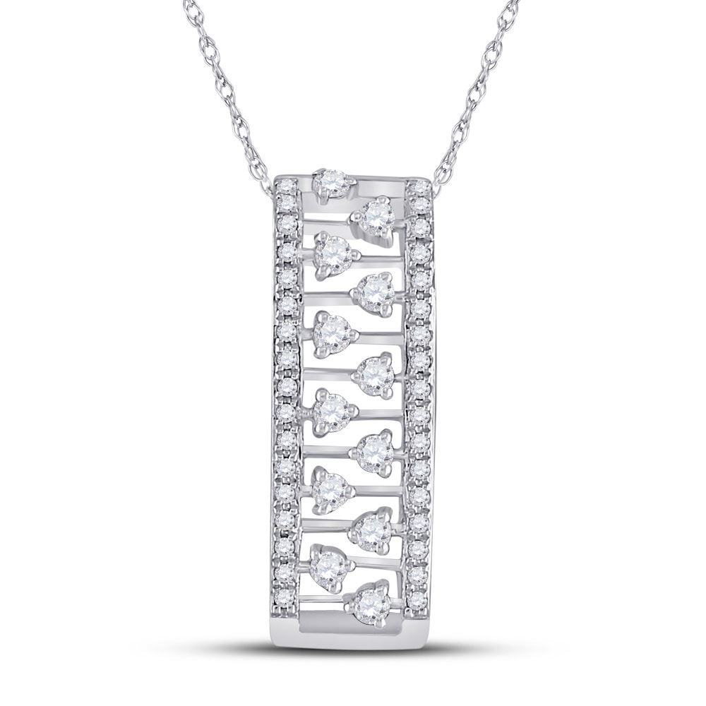 14kt White Gold Womens Round Diamond Rectangular Fashion Necklace 1/3 Cttw.