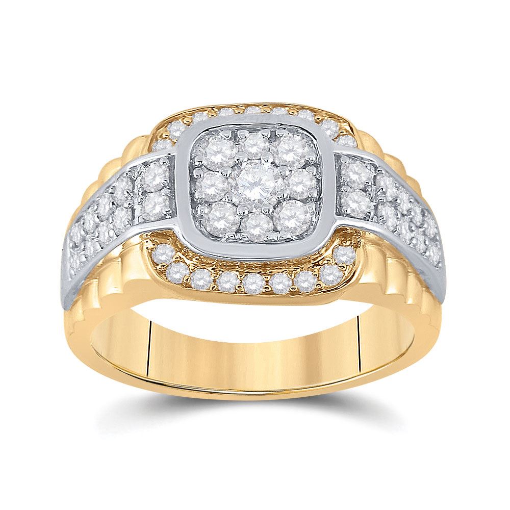 10kt Two-tone Gold Mens Round Diamond Ribbed Square Cluster Ring 1-1/4 Cttw.