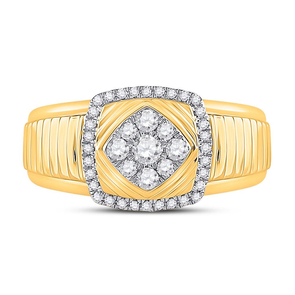 10kt Yellow Gold Mens Round Diamond Ribbed Square Cluster Ring 1/2 Cttw.